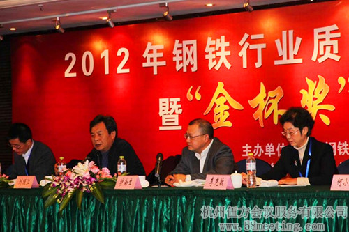 2012年12月20日,鋼鐵行業(yè)質(zhì)量品牌建設總結(jié)暨“金杯獎”表彰大會在杭州召開。據(jù)伍方會議服務了解,工業(yè)和信息化部科技司副司長沙南生出席會議并講話。鋼鐵協(xié)會黨委書記、副會長劉振江等出席活動。